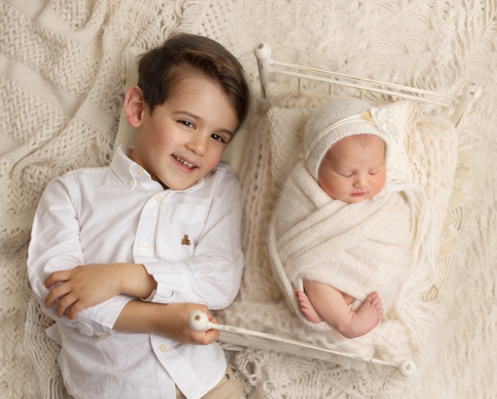 Sibling and newborn session photography captures the beauty of sibling and newborn love, creating timeless connection, bonding, and precious memories.